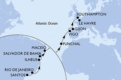 Маршрут круиза: Рио-де-Жанейро - Сантус